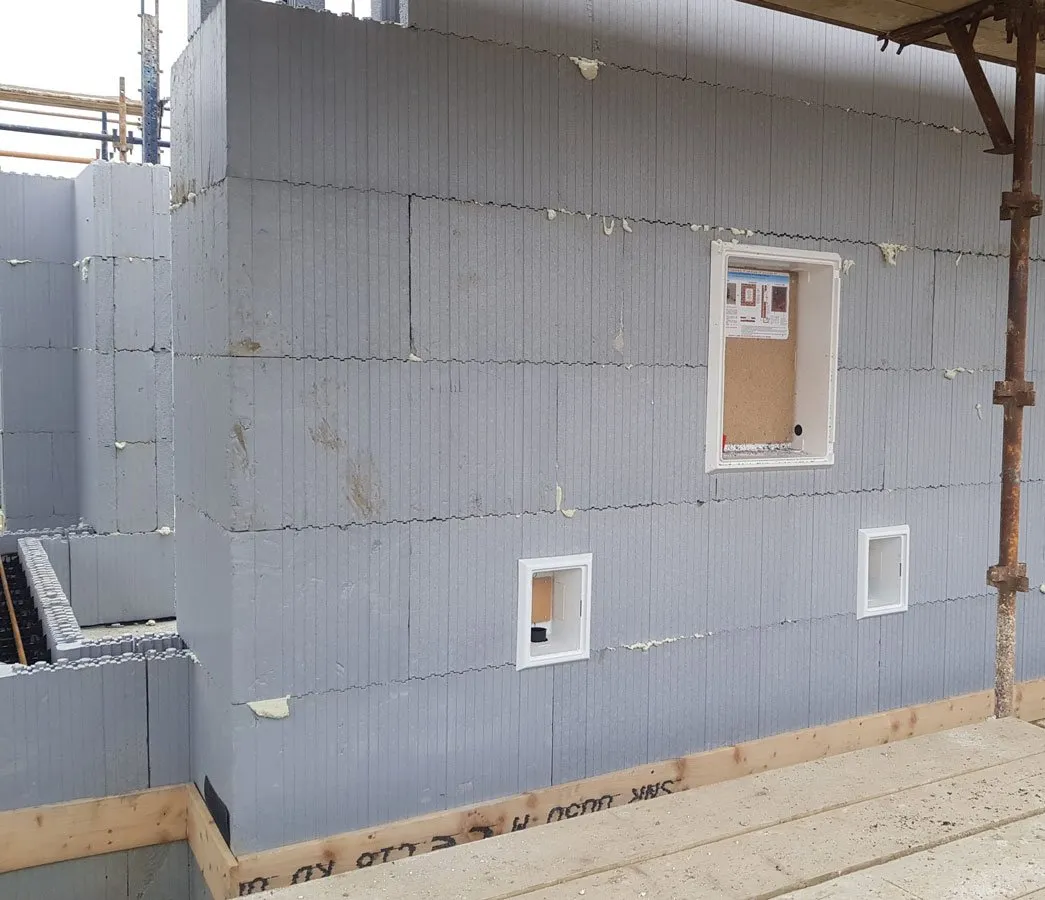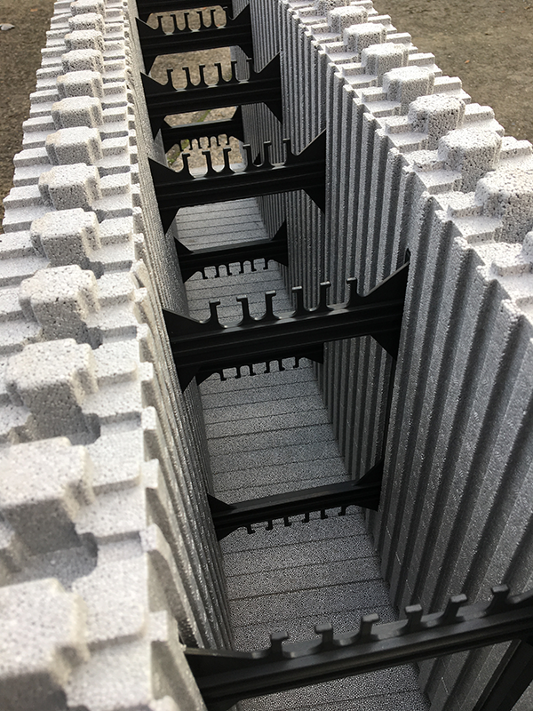 ICF Walls can be assembled under severe weather conditions. Insulation and fastening strips are already incorporated.